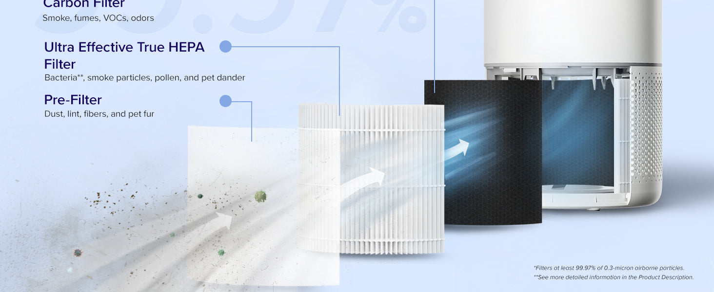 - ใ๐ ๐ข๐ฅ๐ญ๐๐ซ ๐๐ข๐ซ๐๐จ๐ง๐ ๐๐๐ซ๐ญ๐ข๐๐ฅ๐๐ฌใ- Working with ultra-fine Prefilter and activated carbon filter, Our HEPA filter traps allergens like dust, pollen, mould spores, pet hair, and reduces unwanted odors from pets, smoke, cooking fumes