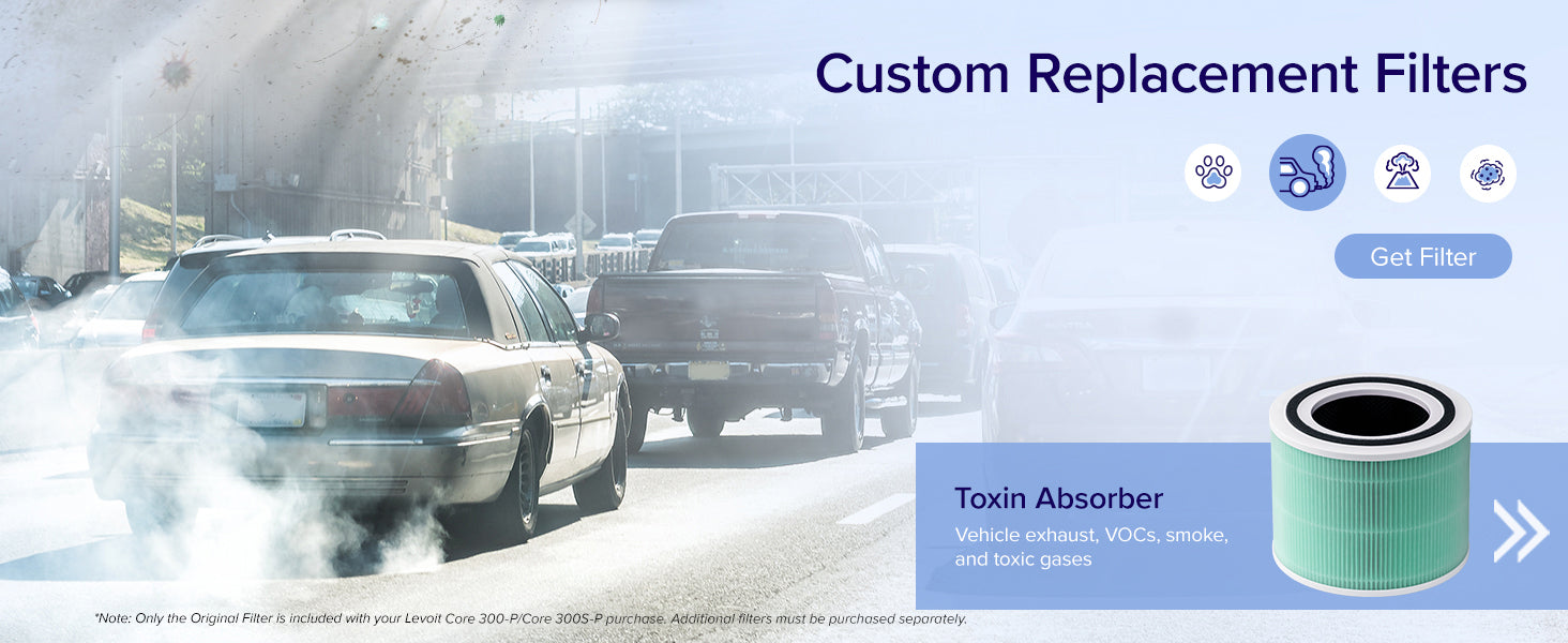 - ππππππππ π πππππ πππππππ: Choose from a variety of replacement filters to best meet your needs. The Toxin Absorber Filter specializes in smog, toxins, and VOCs, while the Smoke Remover filter addresses smoke from wildfires, smoke, and other particulates. The Pet Allergy Filter captures fur and absorbs unpleasant odors.