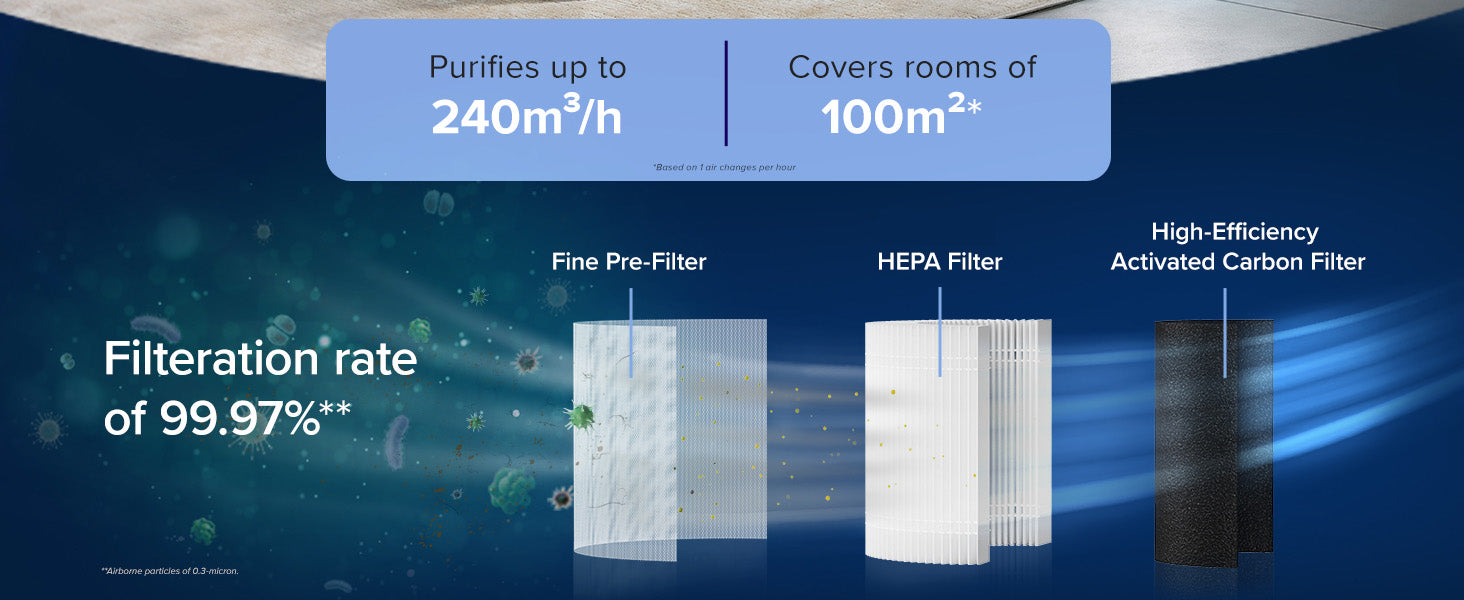 - ใ๐๐๐๐ข๐๐ข๐๐ง๐ญ ๐-๐๐ญ๐๐ ๐ ๐ ๐ข๐ฅ๐ญ๐๐ซ ๐๐ฒ๐ฌ๐ญ๐๐ฆใ The first defence primary filter can filter dust, pet fur, lint; The second defence HEPA filter trap airborne particles such as pollen, pet dander. The last defence activated carbon stage can effectively filter out unpleasant smoke and odours. 3-Stage defences protect your each breathes