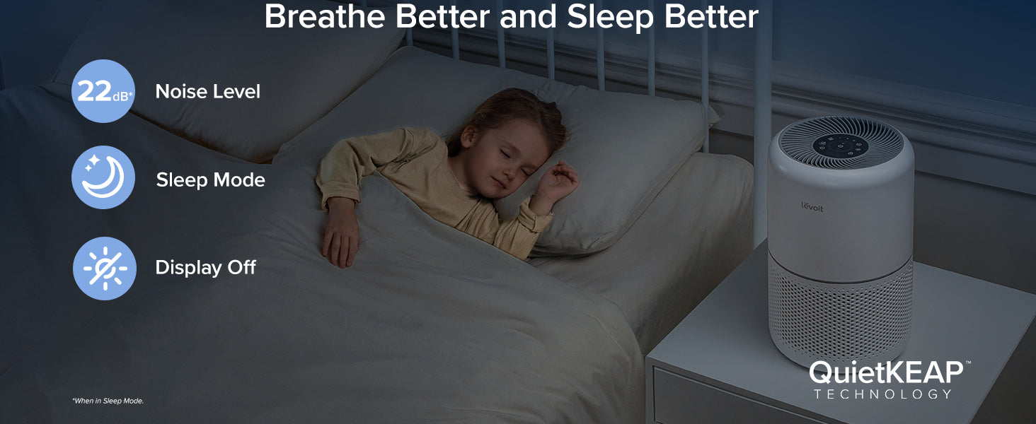 - ใ๐๐ฅ๐ญ๐ซ๐-๐๐ฎ๐ข๐๐ญ ๐๐ฅ๐๐๐ฉ ๐๐จ๐๐ใ No light, no noise, just air purification! Sleep soundly while the air purifier works as quietly as 22dB for light sleepers. Sleep Mode automatically turns off display lights and reduces noise levels