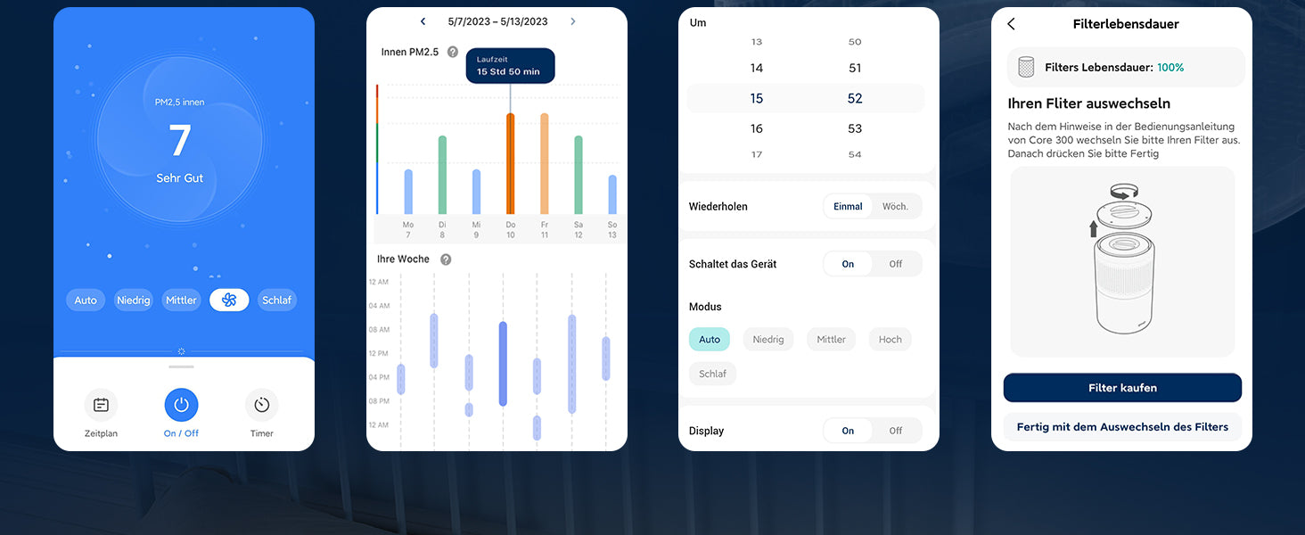 - ใ๐ ๐ซ๐๐ ๐๐จ๐ฎ๐ซ ๐๐๐ง๐๐ฌ ๐๐ง๐ ๐๐ง๐ฃ๐จ๐ฒ ๐๐จ๐ฎ๐ซ ๐ ๐ซ๐๐ฌ๐ก ๐๐ข๐ซใ Simply ask Alexa or Google Assistant to control the air purifier when your hands are full. The free VeSync app also allows you to customize some preset like schedules. Not sure which gear to use? Click the automatic mode, let Core 300S automatically select the most needed mode according to your air quality. When you switch it to high fan speed, it can cools down your room in the summer and brings you comfort