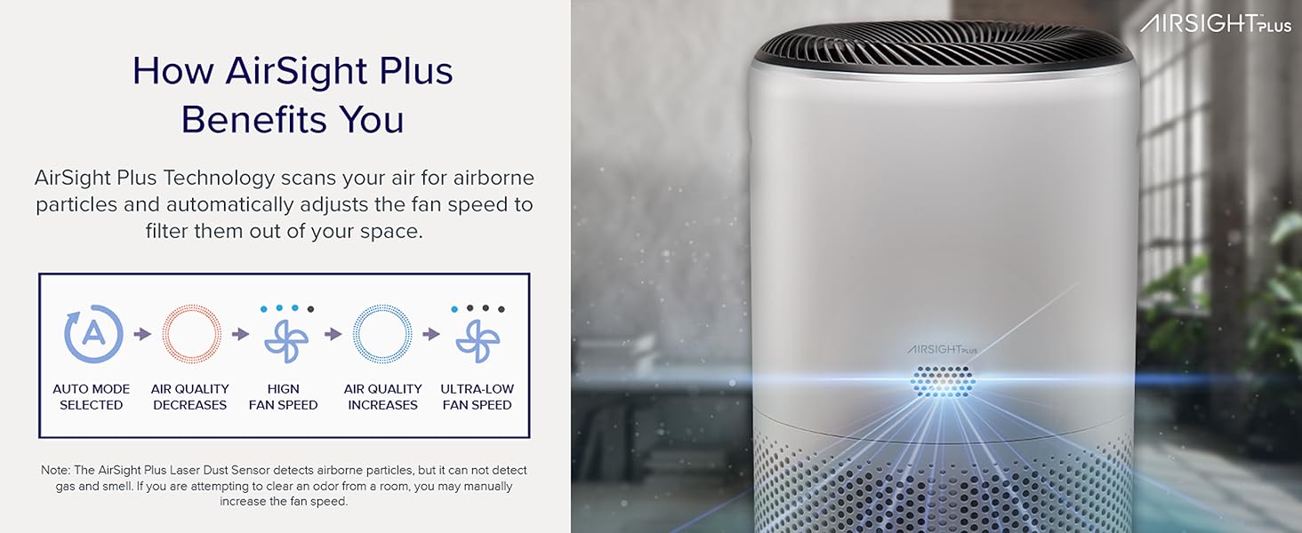 - ใ๐๐๐ง๐ฌ๐ข๐ญ๐ข๐ฏ๐ ๐๐ฎ๐ญ๐จ ๐๐จ๐๐, ๐๐๐ญ ๐๐ญ ๐๐ง๐ ๐ ๐จ๐ซ๐ ๐๐ญ ๐๐ญใ- With AirSight Plus technology, the air purifier measures the quality of the air and automatically adjusts the fan speed accordingly. It reads the air - so it can clean the air. When you switch it to high fan speed, it can cools down your room in the summer and brings you comfort