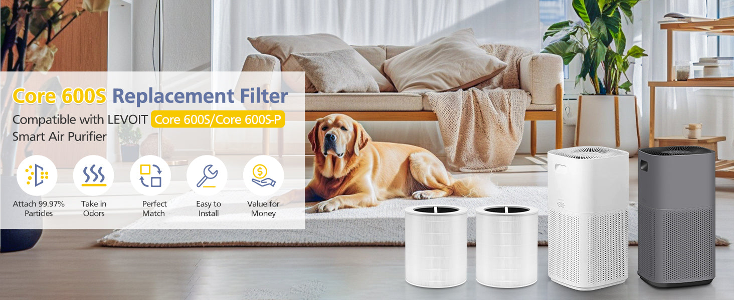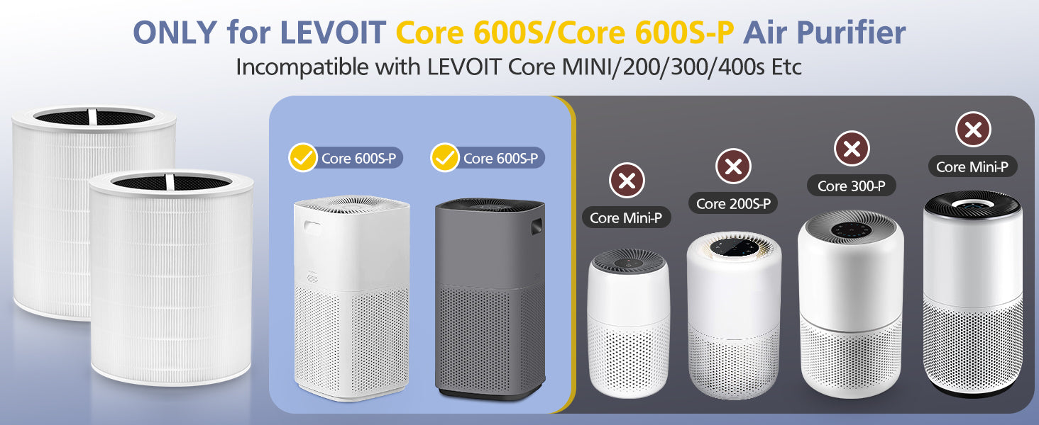 - Compatible With: Our Core 600S replacement filter fully compatible with LEVOIT Core 600S-P air purifier with perfect size, HEPA and High-Effeiency purifacation as same function as original filter. Please confirm your machine model before making an order