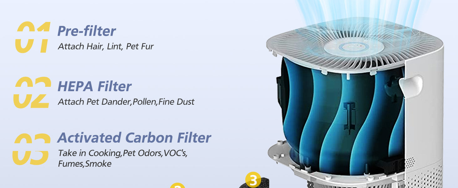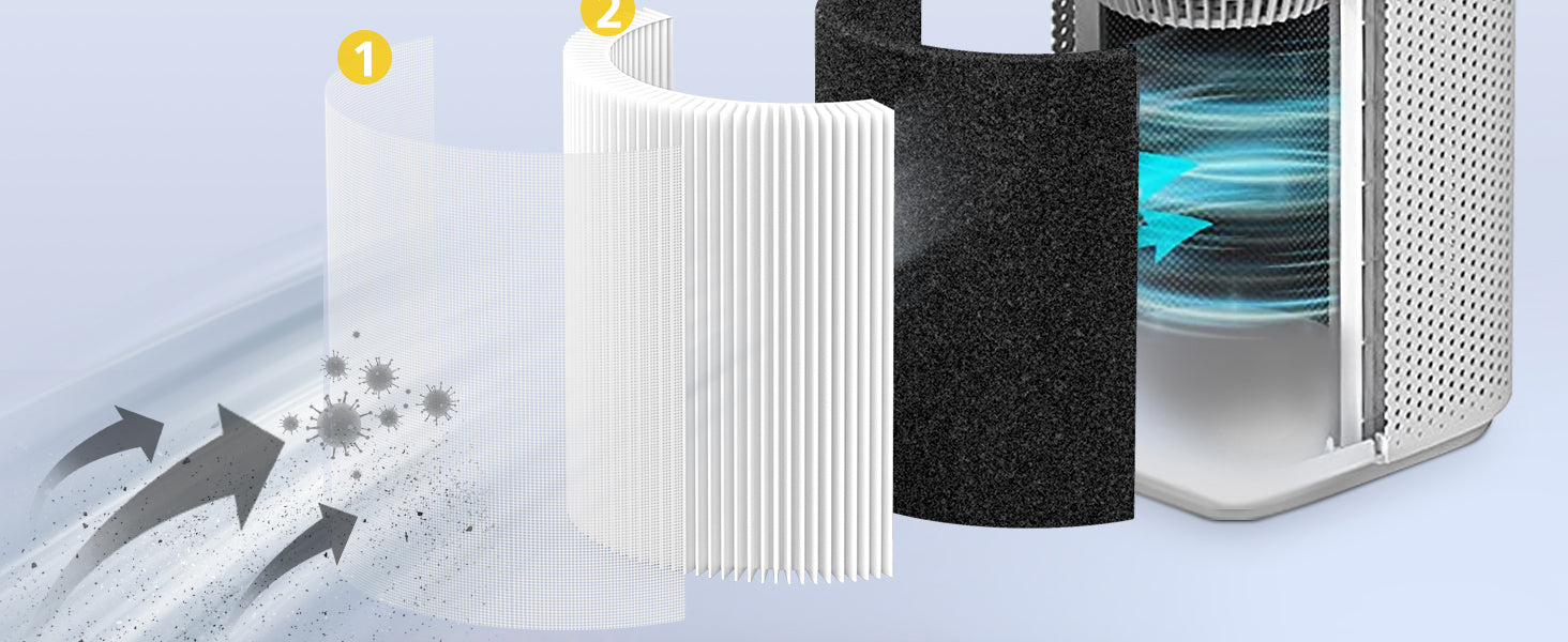 - 【Upgraded HEPASmart Technology】Our HEPA Filter is safer than medical surgical mask materials and can achieve a better purification effect than traditional general HEPA. It captures 99.97% of dust and allergens as small as 0.3 microns, such as household dust, pet dander, mold spores and plant pollen.