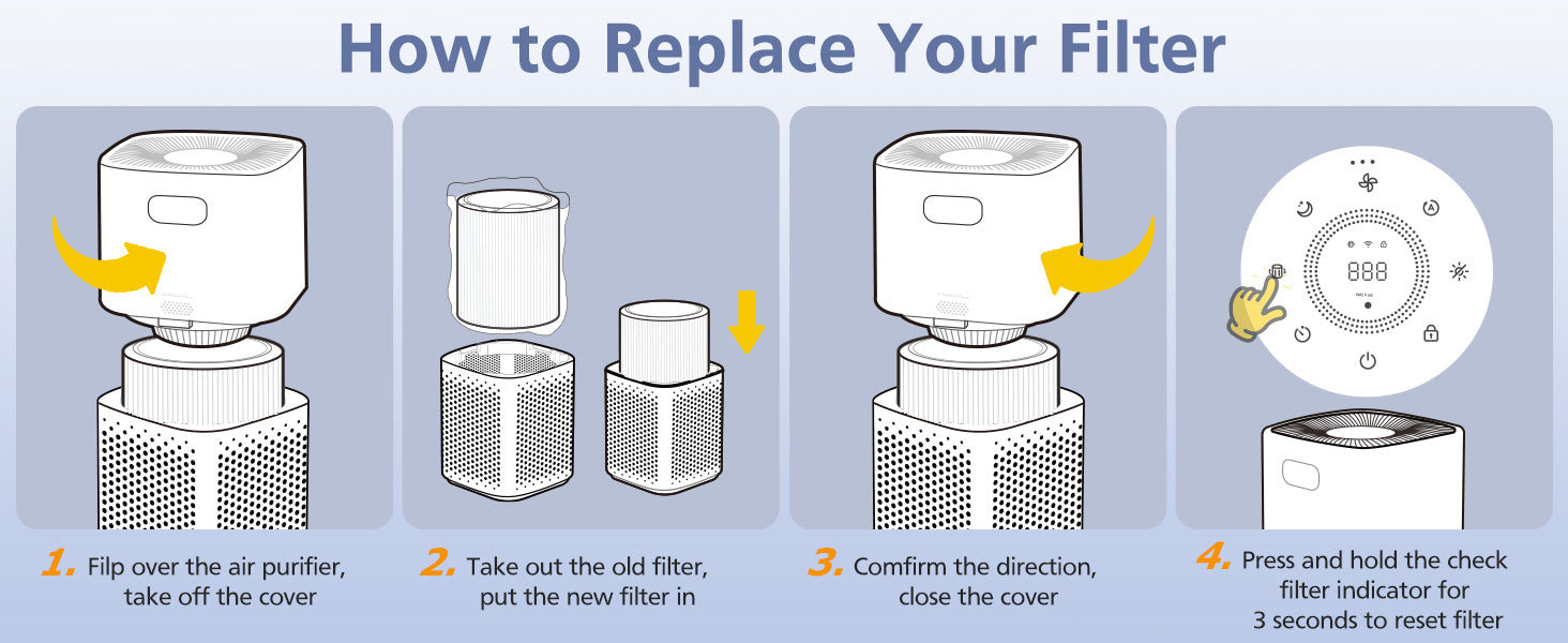 - 【Warm Maintenance Tip】 You may need to replace your filter earlier or later, depending on how often you use your air purifier. Using your air purifier in an environment with relatively high pollution may mean you will need to replace the filter more often.