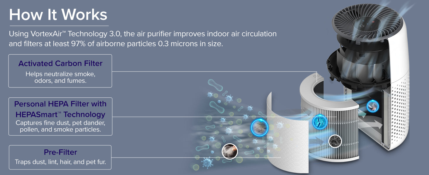 - ใ๐ ๐๐๐ฒ๐๐ซ ๐๐๐ฉ๐ ๐ ๐ข๐ฅ๐ญ๐๐ซใ: The three-layer Hepa filter removes most pollutants like dust, pet dander, pollen, smoke, odors, and hair to provide you with a clean and safe environment
