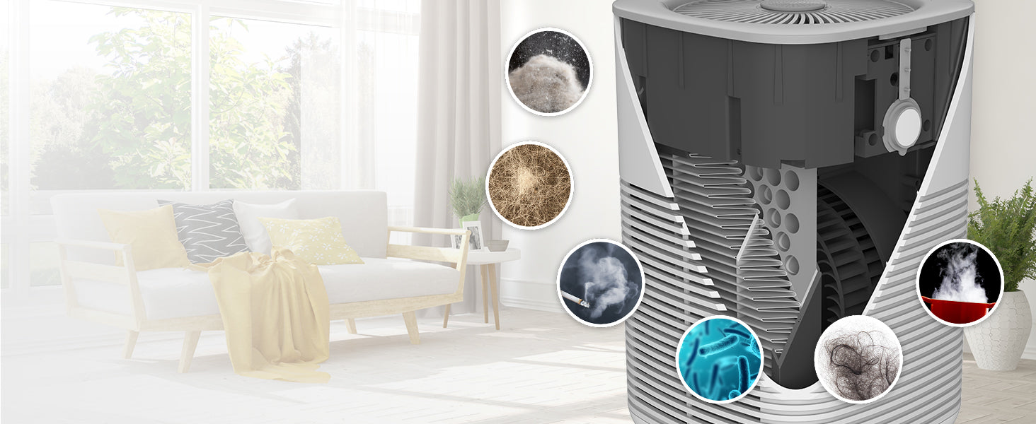 - ใ๐๐๐๐๐๐ญ๐ข๐ฏ๐๐ฅ๐ฒ ๐๐ฎ๐ซ๐ข๐๐ฒ ๐ญ๐ก๐ ๐๐ข๐ซใ HEPA filter can effectively clean airborne particles 0.3 microns in size, like smoke, odours, pollen and dust mites etc to help relieve asthma, allergy symptoms