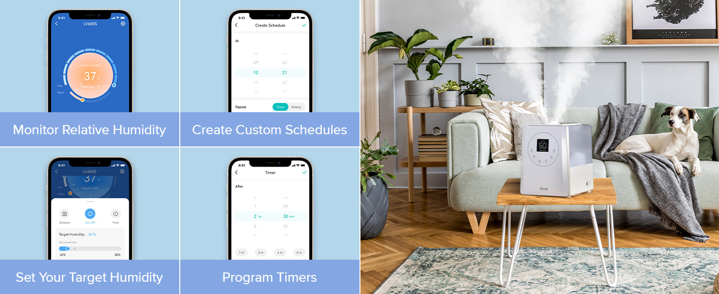 With the free VeSync app, complete control over your indoor humidity is just a tap way.