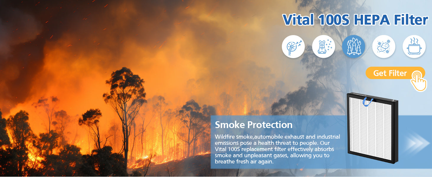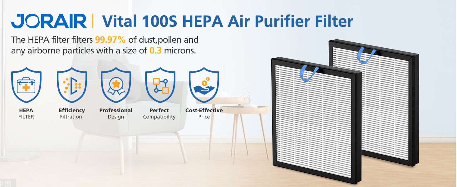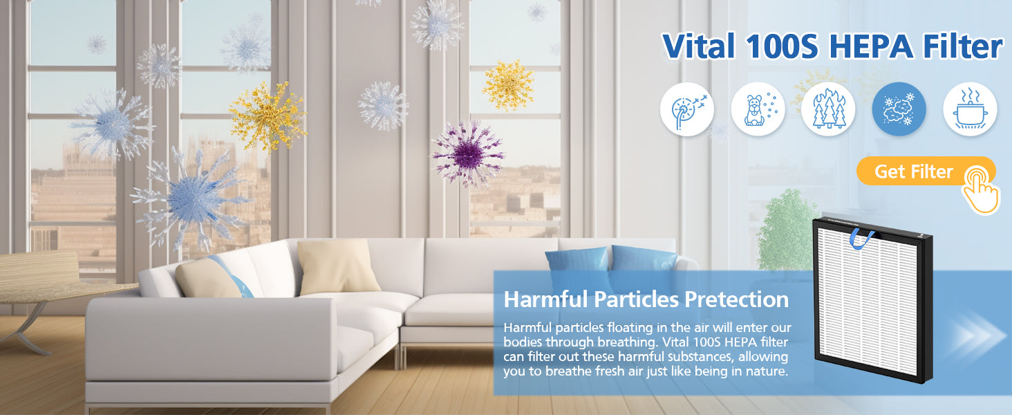 - Upgraded Smart Filtration Technology: Our efficient main filter use upgraded filtration technology, which can achieve a better purification effect than traditional general filter. Vital 100S efficient air filter can effectively attaching 99.97% of all airborne particles down to 0.3 microns in the air like dust, hairs, pet fur, lint, and prolongs the life for levoit Vital 100S air purifier to stay away from dust, pollen, smoke particles, pet dander